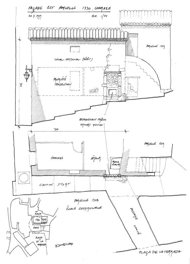 Peu auparavant j’avais travaillé chez P+P+F Goujon, architectes à Nice. J’y avais pu développe une certaine aisance dans le traçage à main levée (plutôt qu’à la règle), technique graphique préférée de cette agence. Ce mode de présentation passait aussi bien auprès de l’Administration qui instruit les dossiers que chez les entrepreneurs qui mettent en oeuvre. Un gain de temps et d’élégance aussi, il est bon de savoir.