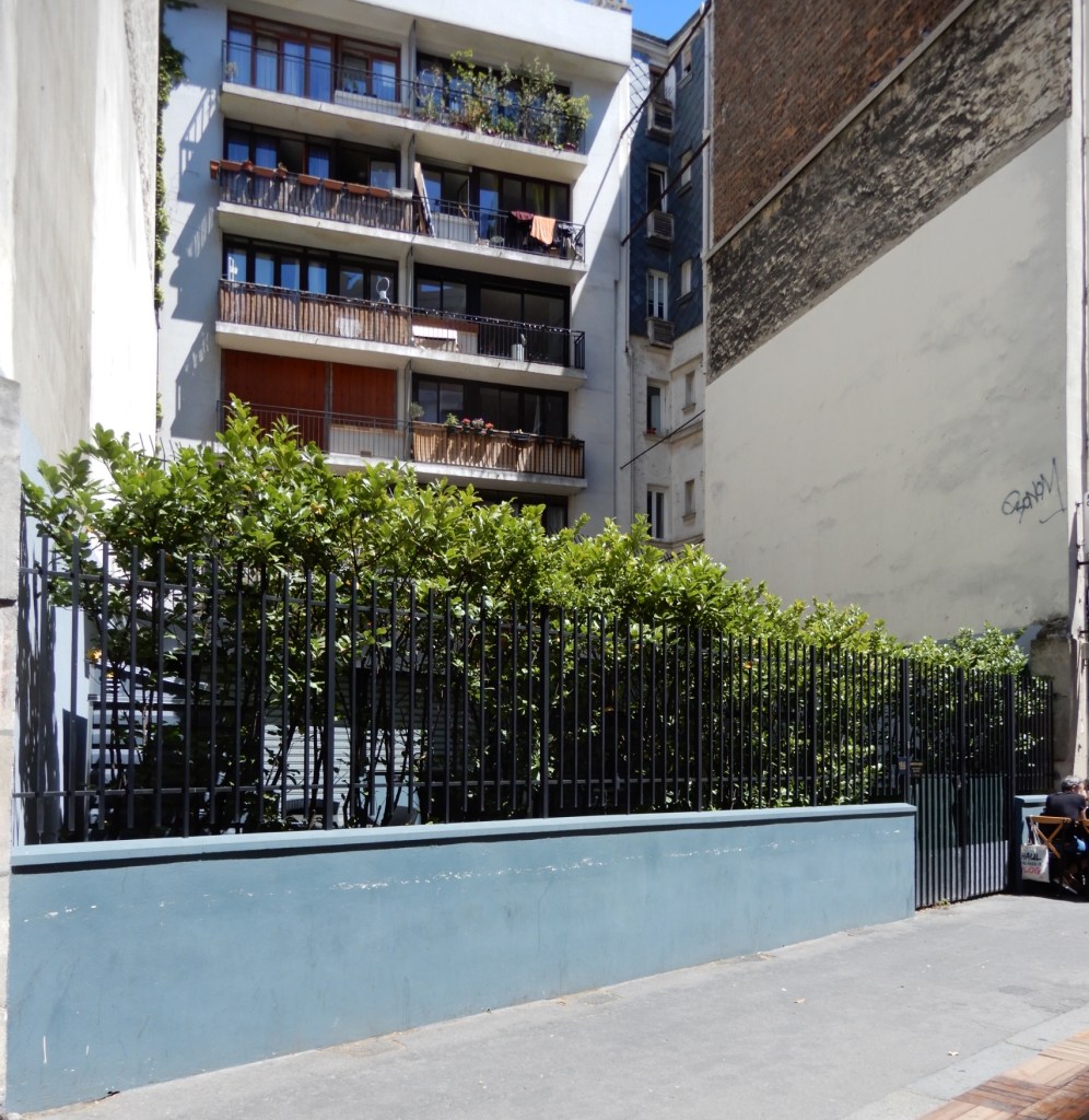 ENG : The issue was to erect a barrier, at private expense and means, on the public domain, with authorisation from the Parisian municipality. Naturally, the usual application forms do not provide for such case scenari. To begin, there is no registered parcel of land. Illustrative draughtsmanship (unsigned) on behalf of the building contractor, owner of the adjacent property, who undertook the negotiation, the design and the building works.