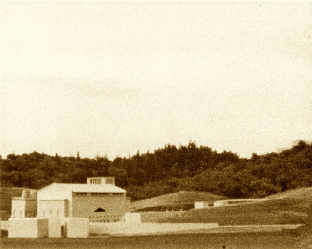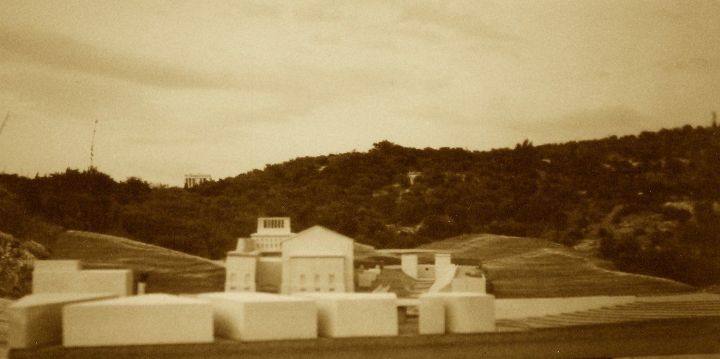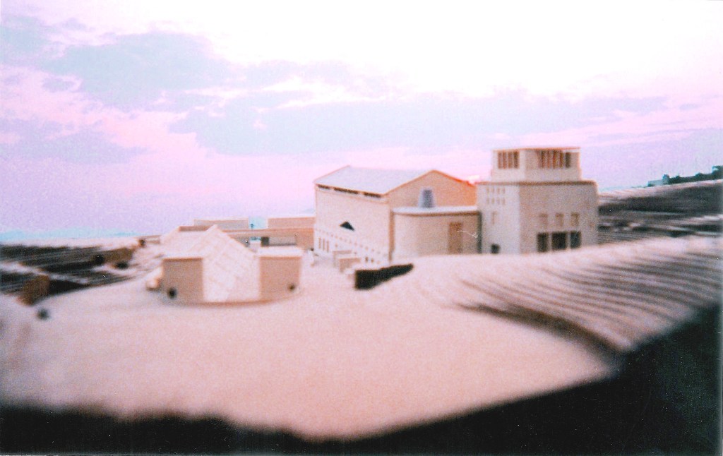 Dopo l’ esposizione a Atene dei progetti di concorso il plastico è stato ricuperato per nostro conto nostro dall’ amico Dimitris MOSCHOS, architetto a Atene, e una sera d’ estate l’ ho fotografato in situ, a Koile, sul tetto della mis VW Jetta. Si vede appena il colmo del Partenone in alcune vedute. Ma tutti e due gli edifici, il monumento e il nostro progetto, si rivolgono a mare.