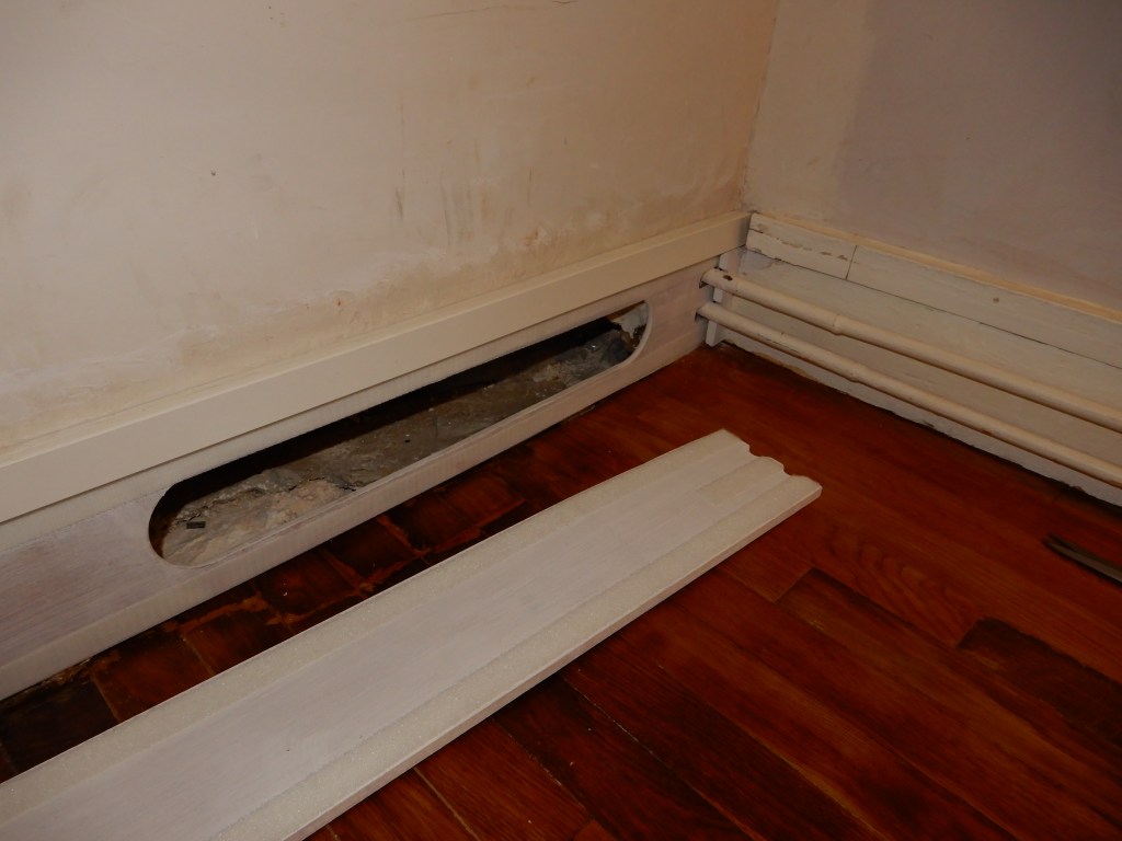 Cercare un’ artigiano che accettasse di fare il lavoro a parecchie tappe e passare il tempo necessario era assurdo. Il battiscopa a scratch smontabile integra e nasconde una feritoia di ispezione.