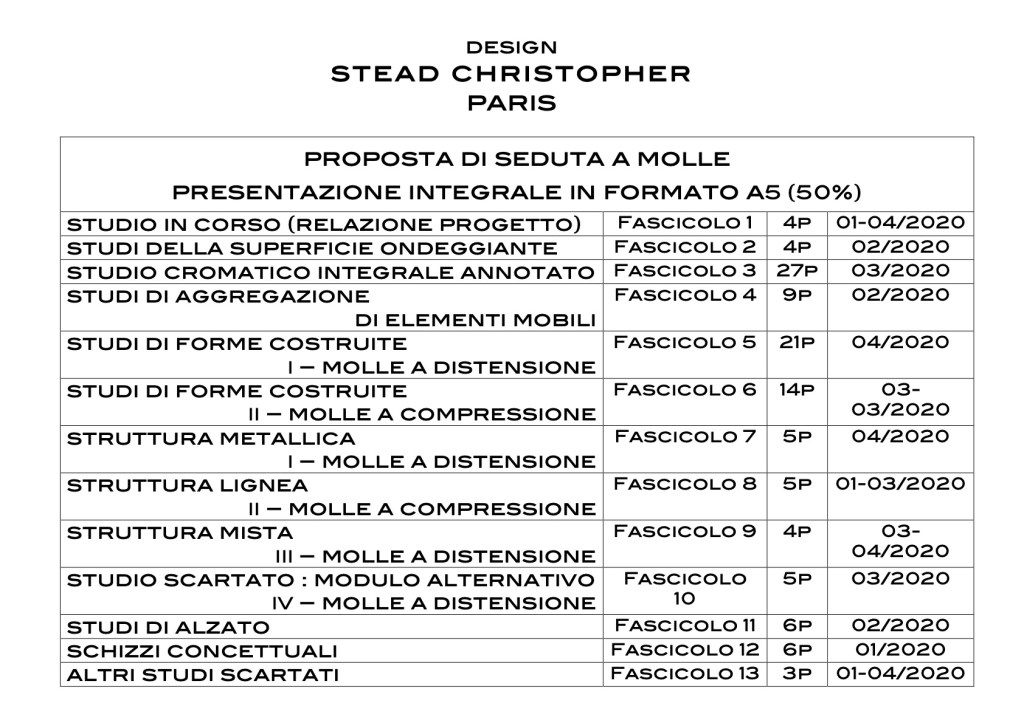All’ invito di un’ azienda brianzola di reputazione internazionale, quale rappresentante aveva visto in produzione una cosa mia da POZZI & VERGA, mi sono reso in sede a Meda, giovedì 12 dicembre 2019. La cortese visita dei laboratori, spiegando la filosofia tecnica e commerciale dell’ azienda, si è conclusa con una domanda esplicita di studiare una seduta a molle da proporgli nel anno nuovo (per la collezione 2021), la disponibilità per un nuovo incontro essendo già rimesso alla primavera, in occasione del Salone del Mobile, a Milano.