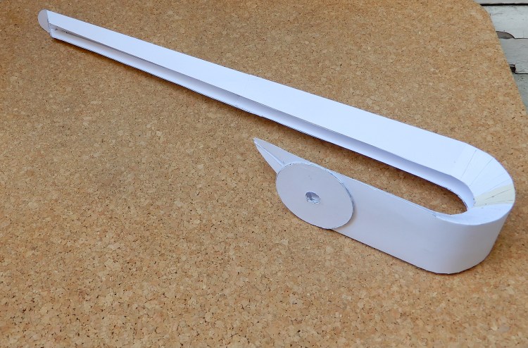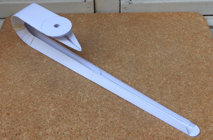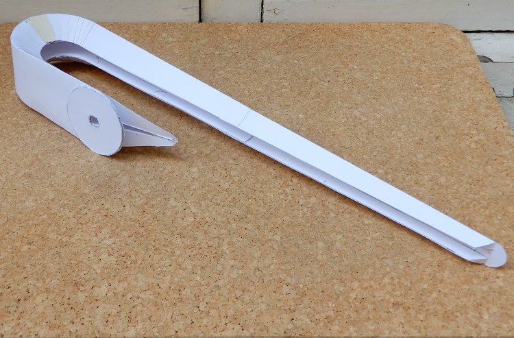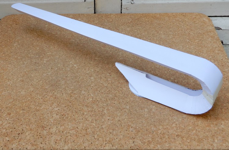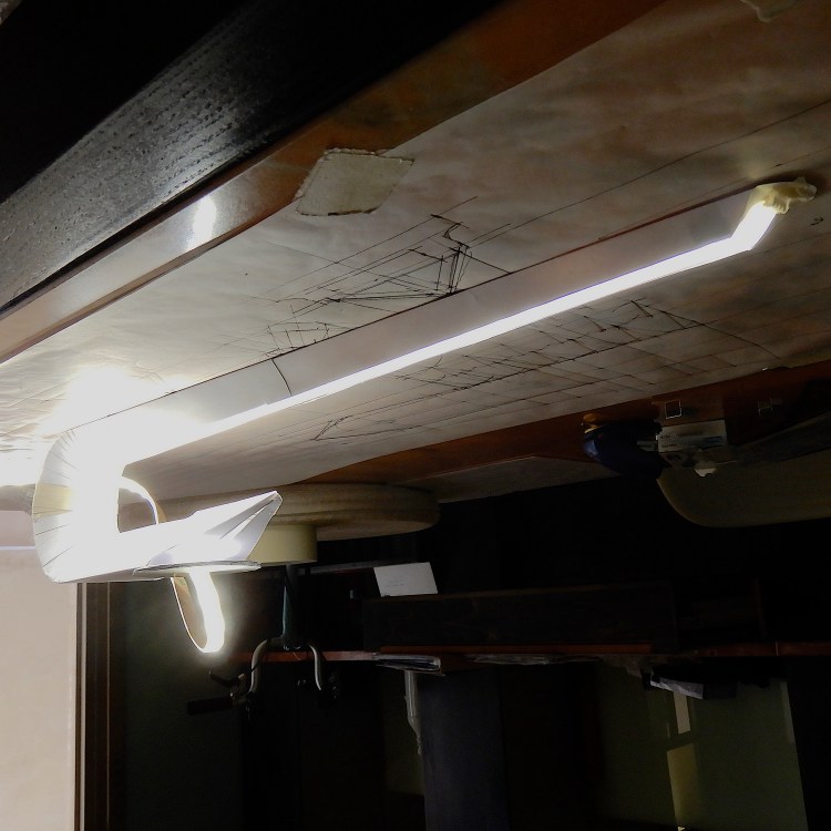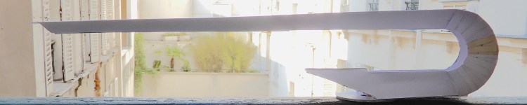 Nello sviluppo della lampade QUILL, a destinazione del divano PARIGI, ho voluto verificare, in grandezza naturale, il fascio di luce risultante dell’ impiego di un nastro a LED disponibile nel commercio. Il modellino risulta da un disegno su lucido 1:1 fatto apposto, fotocopiato in grande formato, poi ritagliato e piegato. Da un nastro a 12v, utilizzato per il modellino e per sviluppare il prototipo in mogano, siamo passati alla scelta di un nastro 24v. più affidabile.
