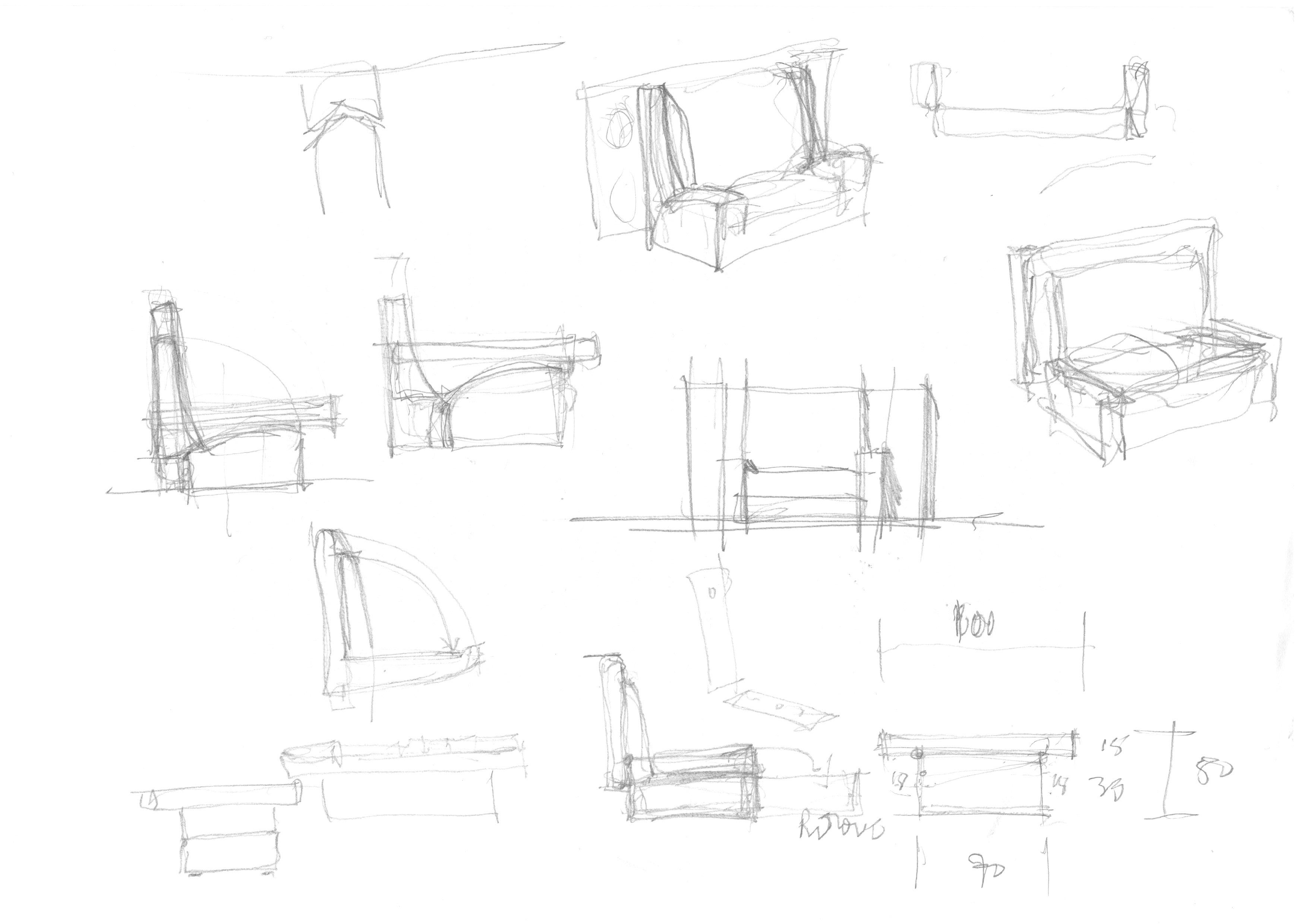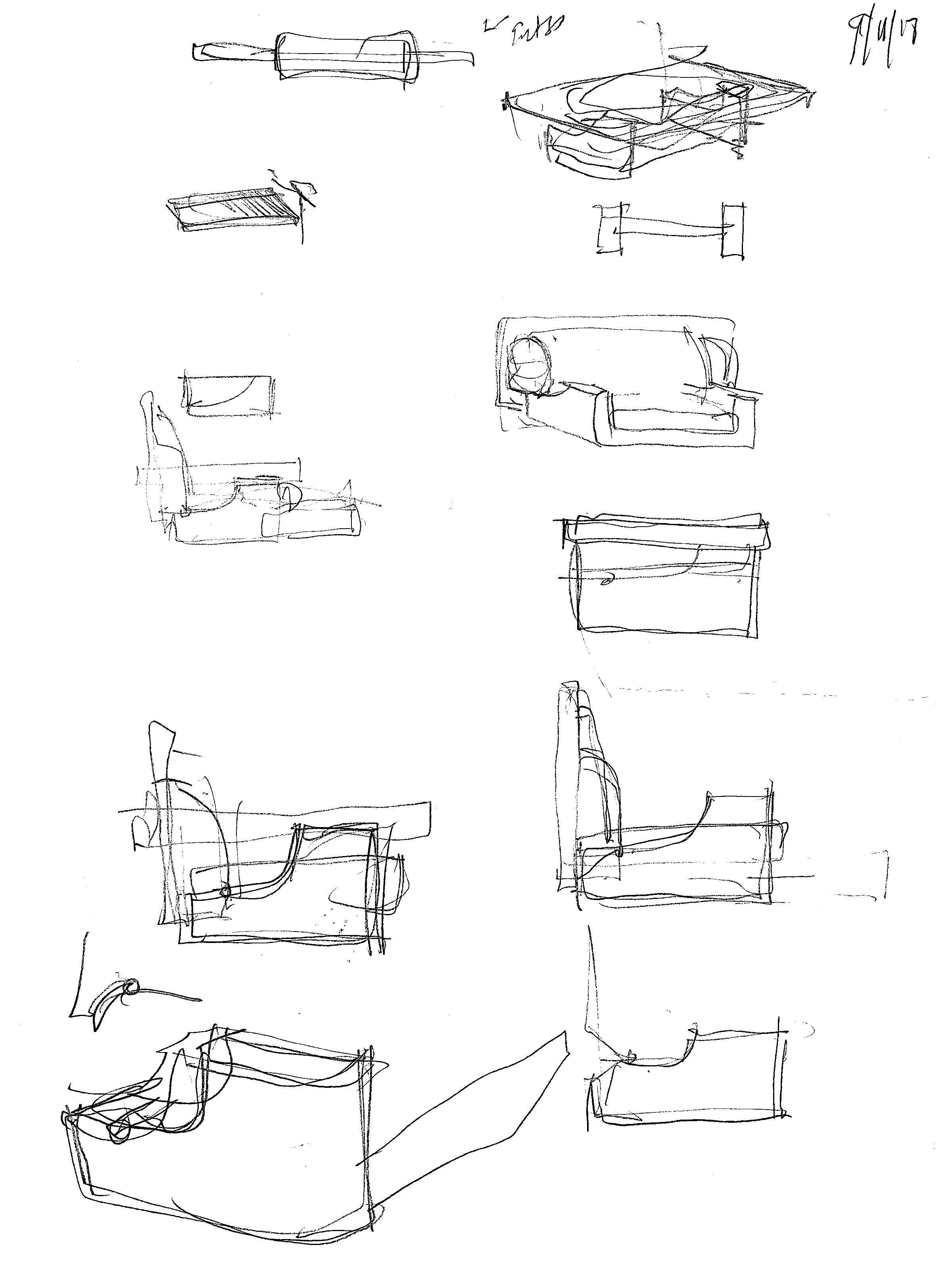 Qualche schizzo embrionale, anteriore alla linea di sviluppo del divano PARIGI