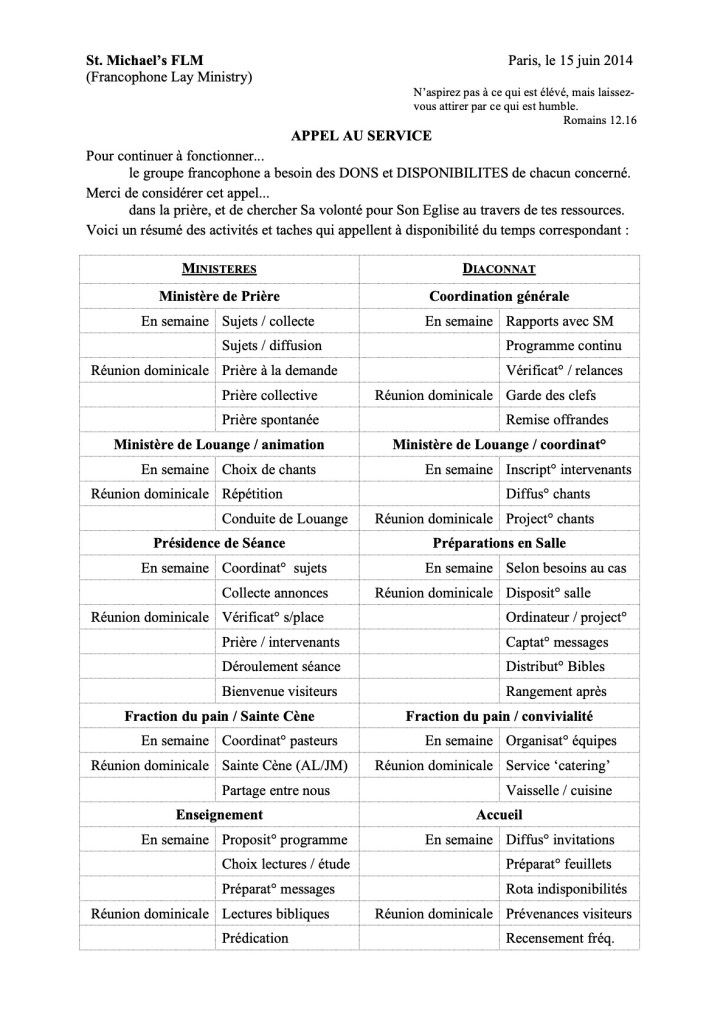 Ho assunto varie responsabilità sotto le autorità ecclesiali locali della Federazione delle chiese evangeliche battiste di Francia e delle comunità anglicane a Parigi e a Freiburg-im-Breisgau.