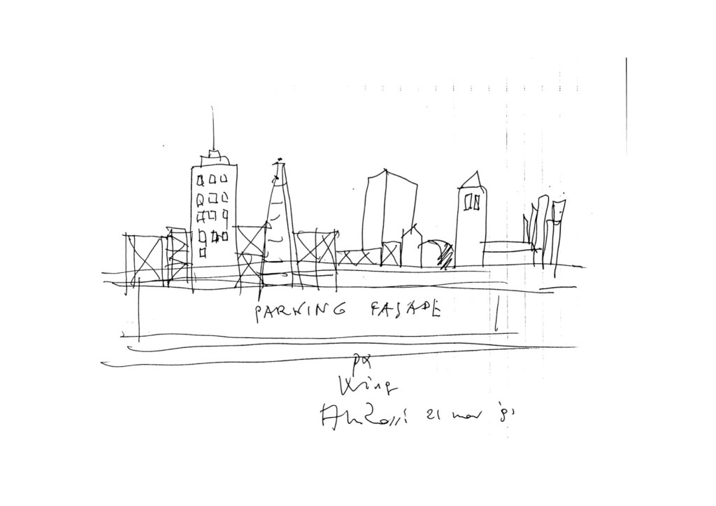 Preparatissimo nella presentazione orale del progetto di concorso, non mi aspettavo alla perfidia di Hans HOLLEIN, che ha trattato grosso modo Aldo ROSSI di incompetente davanti alla giuria di cui faceva parte. In protesta, tramite fax mandato dall’ aeroporto di Edimburgo, ho ritirato immediatamente il progetto. Visto che AR si era lasciato persuadere dai suoi dipendenti a non firmare il progetto, non vedevo proprio perché mi priverei di esercitare il mio diritto. Qualche mese dopo, incrociandolo da GENSLER per una presentazione DISNEY alla Rockefeller Center, HH si è scusato copiosamente presso il suo amico AR.