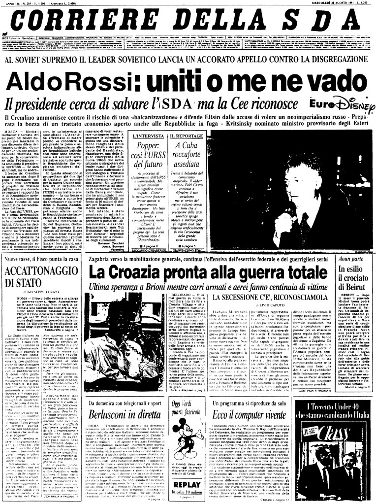 Scambiando ogni tanto fax e telefonate con lo studio newyorkese, Luca e Aldo si sono divertiti nel frattempo a montare questo collage sulla base del quotidiano milanese del giorno, sostituendo alle immagini le proprie foto, con una di Morris nella figura secessionista di uno chef di guerra totale. Il quale è rimasto molto stupito, e quasi pronto a rinunciare alla sua idea.