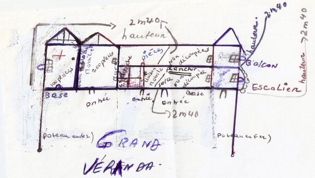 Il brandissait une liste des matériaux requis et une estimation des coûts, mais aucune image du projet qu’il voulait réaliser, hormis ce croquis, qui me charme encore.