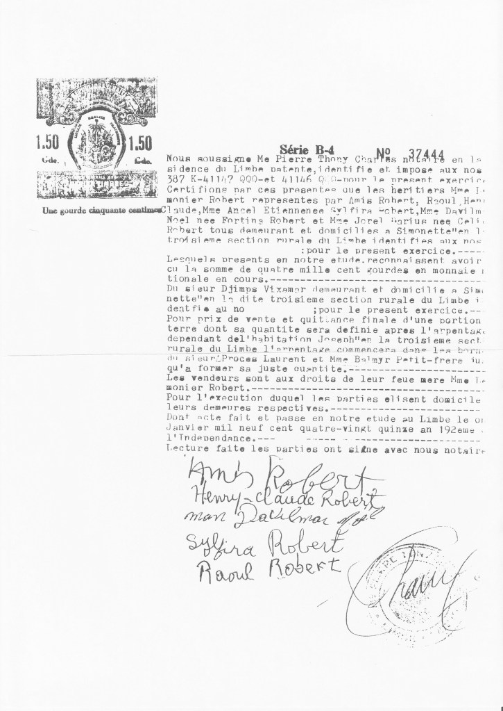Le document notarié de cession contre numéraire en date du 11 janvier 1995 m’ a suggéré que j’ avais affaire avec sieur Djimps VIXAMAR, celui même qui avait acheté le terrain pour construire le C.E.D.H.A.L.