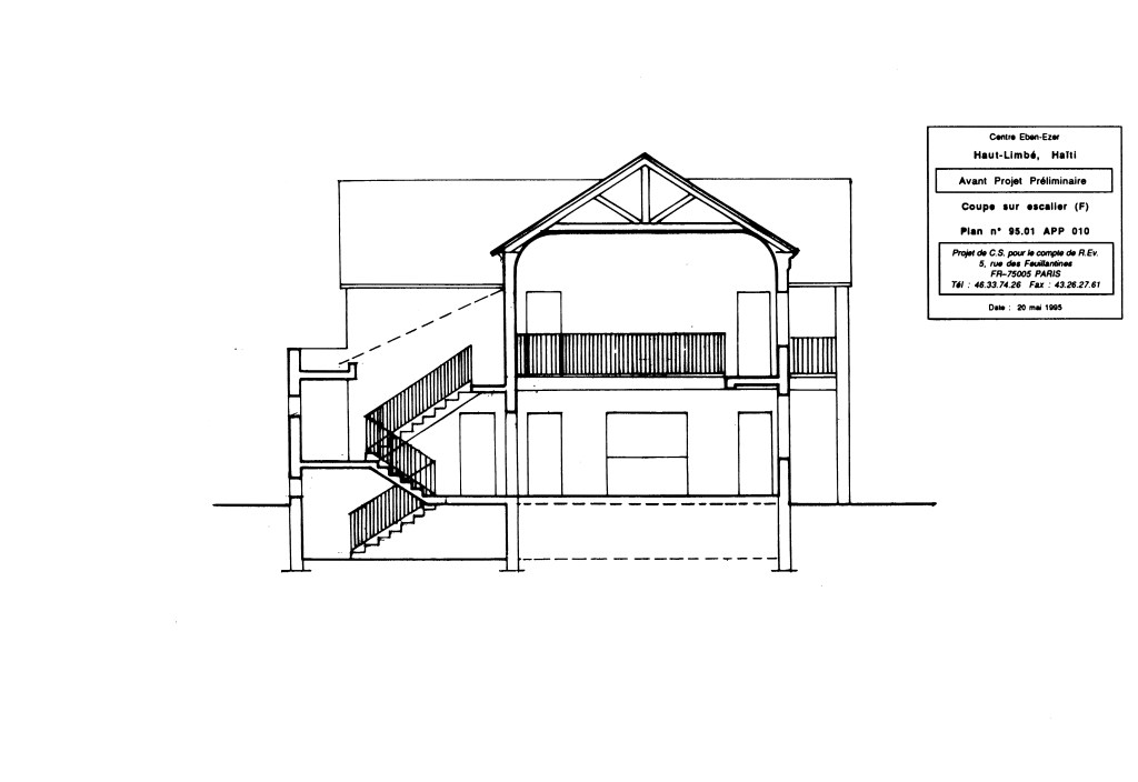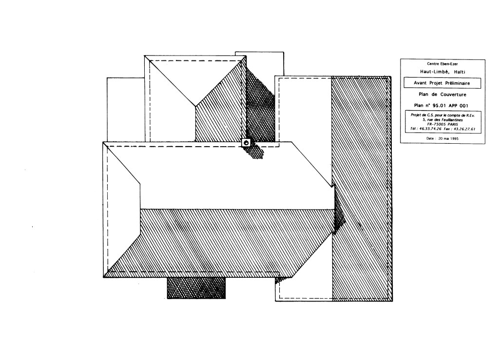 D’où le parti de cette esquisse datée du 22 mai 1995. (J’avais quelque modèle spatial en tête (surtout pour la coupe) qui relèvent de ma propre culture architecturale. Que ce soit le Raumplan de Loos, ou la chapelle Kilmichael of Inverlussa, dont j’avais mesuré le bâti et dressé un dessin de relevé.)