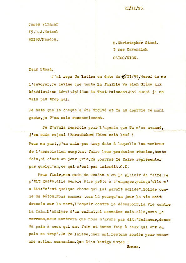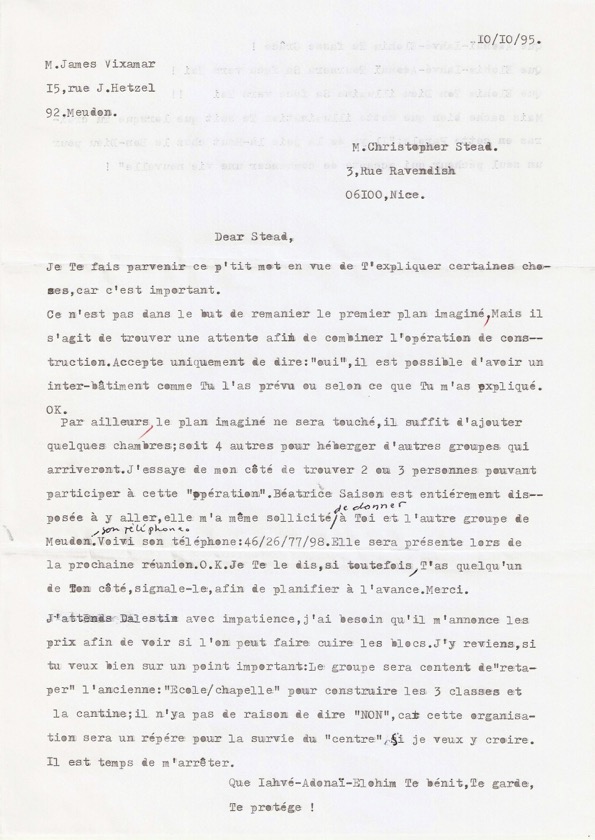 Sur un autre, que j’ai perdu, ou détruit, on a même prétendu que j’ allais m’ occuper de la construction d’ un hôpital. J’ ai protesté à James qu’ il ne fallait pas faire croire que je m’ étais engagé à de telles ambitions. D’ autant plus qu’ entretemps je m’ étais installé avec mon épouse à Nice et nous avions nos propres ambitions familiales !