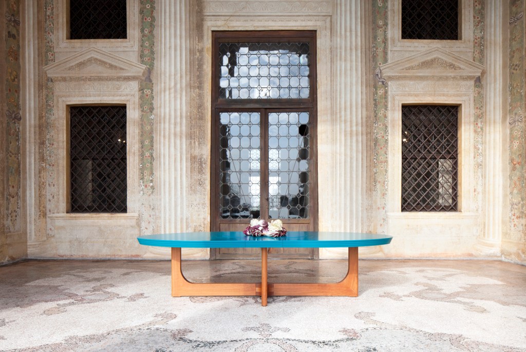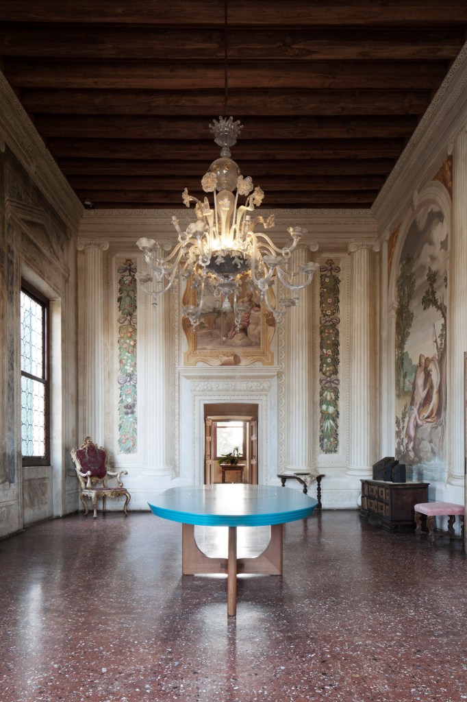 L’esemplare blu asiatico di GIRTH un tavolo per gente di spessore venne accolto il 7 dicembre 2017 (direttamente da Roccabianca), nelle Barchesse della Villa Emo (Andrea Palladio, 1555-1565) a Fanzolo di Vedelago (TV) e rimase in esposizione su un bel pavimento alla veneziana fino al 3 aprile 2018.