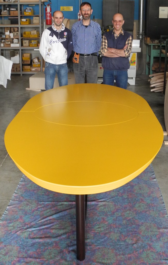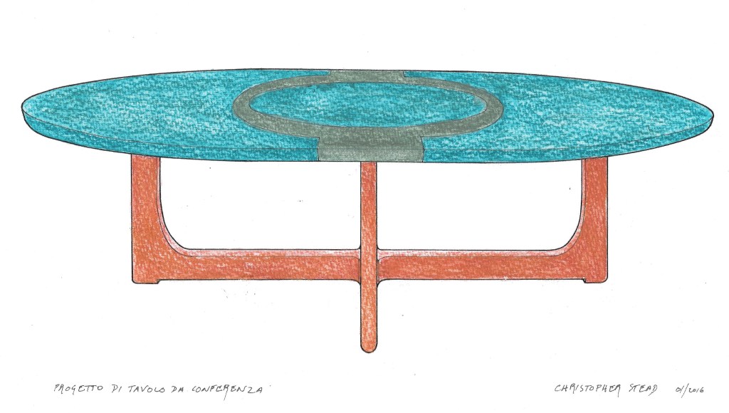 Gli ho proposto di concepire un tavolo da conferenza, sullo stesso principio ma più grande, che la ditta famigliare MASTROBARILLA potrebbe commercializzare.