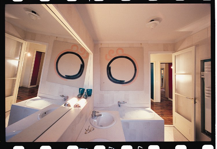 Dans cet appartement, qui se développe en L côté cour, il est possible de voir la cuisine de la salle de bains, moyennant un jeu de baies et de miroirs. La cliente étant de petite taille, ses enfants aussi, j’ai fait incliner le miroir de la salle de bains pour une meilleure jouissance de la beauté. (Photo Antonio MARTINELLI)