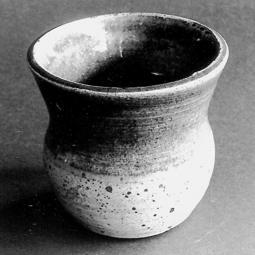 Stoneware, sponge-wiped off-white glaze, pigment flecking