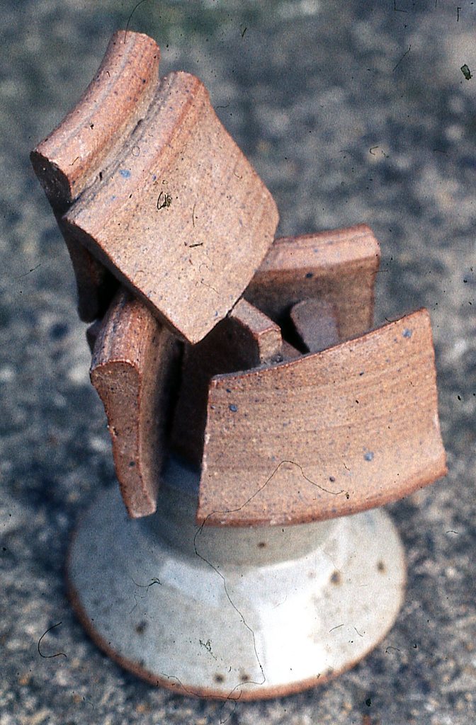 Terre cuite brute, émail Delft blanc et pigments oxydés