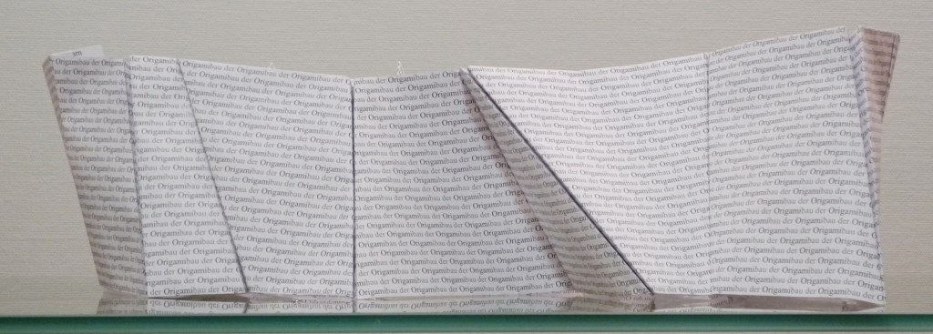 To illustrate my own idea, namely that the building might be referred to as Origamibau, I pieced together a 3D sketch model from printed sheet paper.