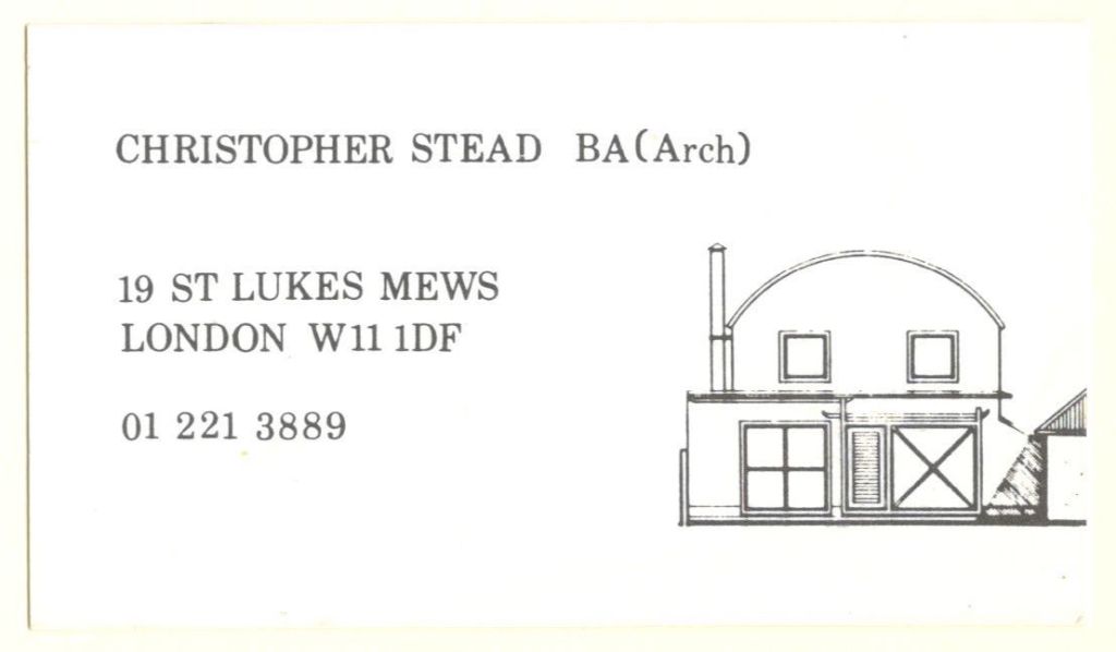 1984 : business card, 19 St Lukes Mews