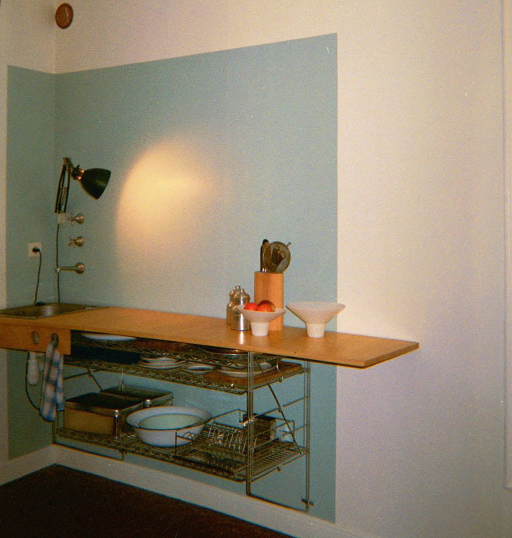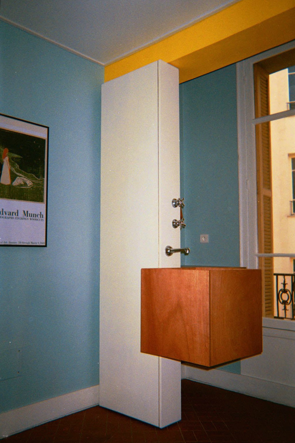 In reducing fixtures to an absolute minimum I intended to effectively de-functionalize as much as possible typically allocated spaces, such as the kitchen, in order to exploit the floor-plate more freely with flexible purpose. A bedroom became the sort of live-in kitchen we were used to. The old small kitchen would become a monolocale or studio flat, in which to put up visiting colleagues and occasional collaborators. It now serves as a laundry-cum-dressing-room antechamber to the sanitary facilities.