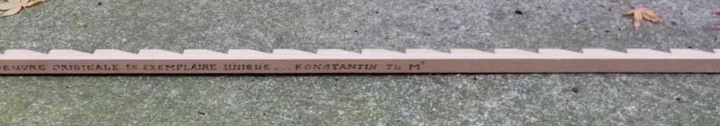 MD, the doyen of readymades, used to make a living selling works by Constantin BRANCUSI. An Italian friend was set to throw an inaugural party in her newly-acquired Parisian apartment. Pendre la crémaillère being the traditional expression for such events, I resolved to commemorate the occasion with my own pseudo-BRANCUSI ‘readymade’ hardwood crémaillère, available in good French hardware stores. (An outmoded species, alas.)