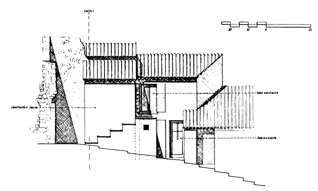 Néanmoins, l’intérêt de cette étude pour son concepteur réside dans l’opportunité qu’elle a donné d’imaginer des solutions peu habituelles, des espaces habitables plutôt caractérisés que normalisés. Le souvenir de logements souterrains en Espagne (où j’avais passé une nuit chez l’habitant), ainsi que des patios de Sevilla, donnait envie d’exploiter aussi bien la lumière zénithale d’une verrière que les vues dégagées à l’horizontale des petites fenêtres aménageables par-ci et par-là.
