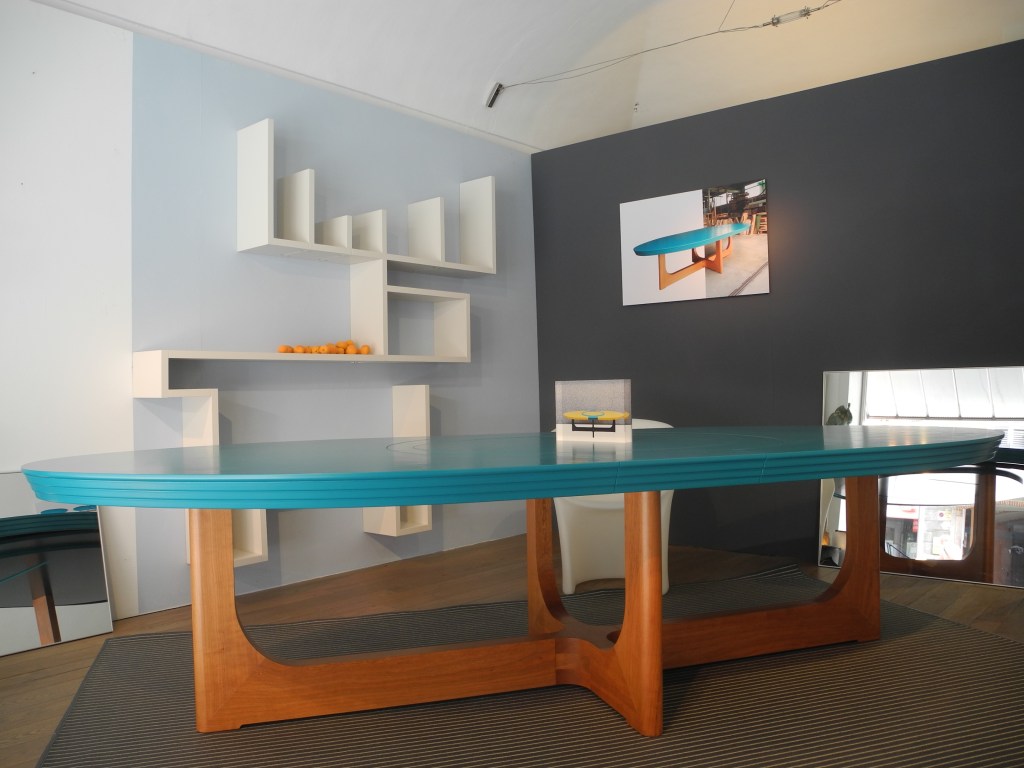 Opening exhibition, graciously offered by the family business in their showroom, of one of the table’s two exemplars. From there it began its pilgrimage and was transferred for temporary exhibition at Roccabianca, thanks to the hospitality of the castle proprietors.