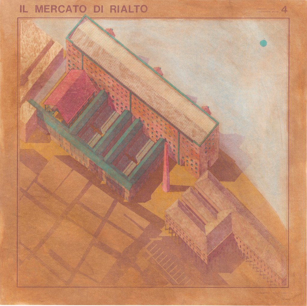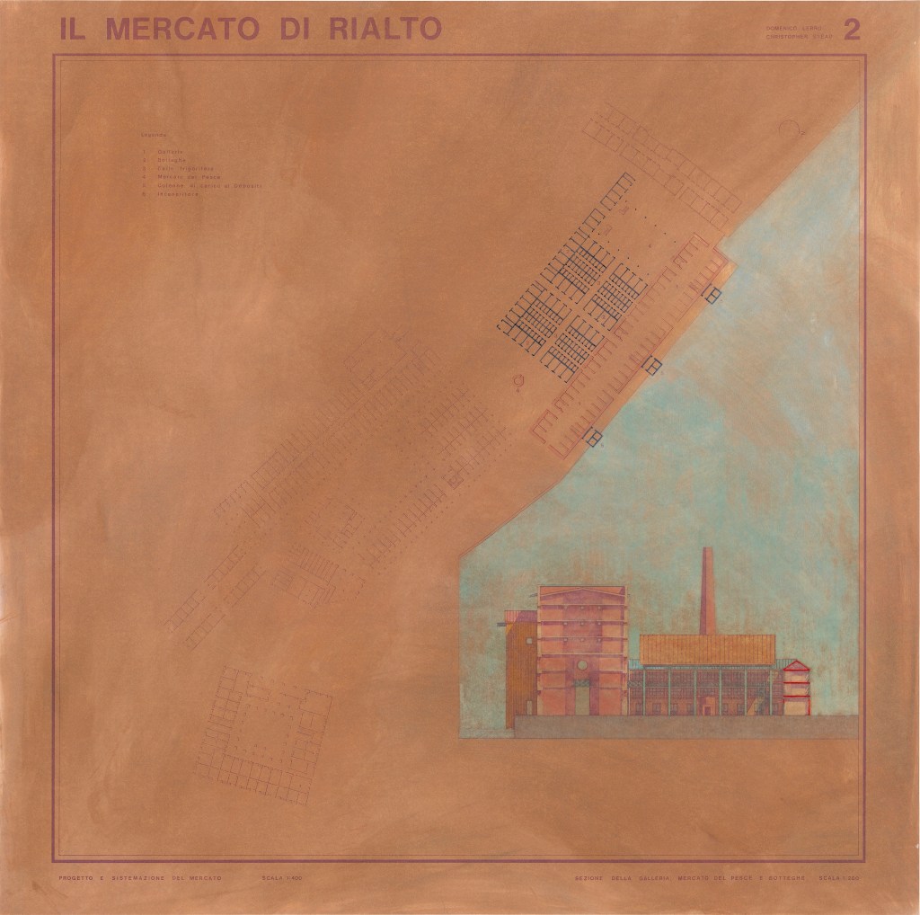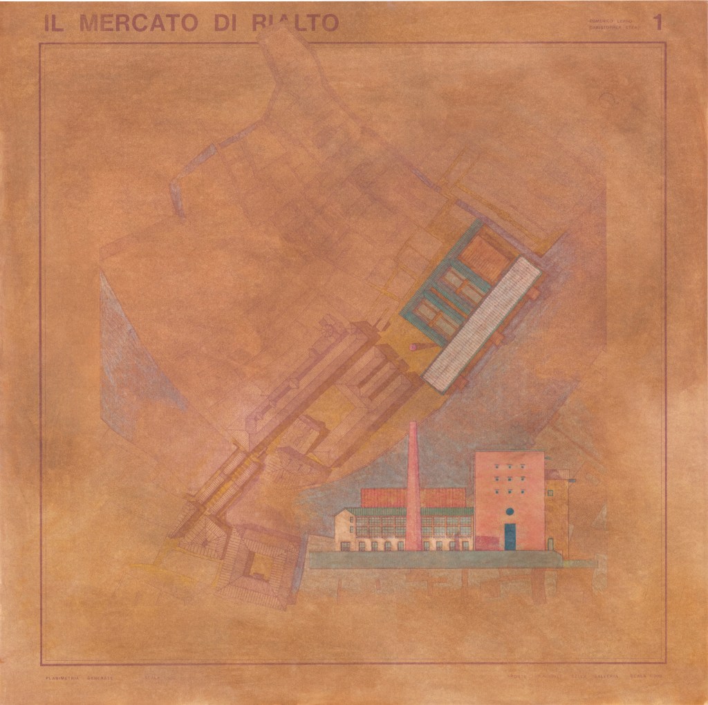 My collaboration with the recently registered architect Domenico (Mimmo) LERRO was possible thanks to the Chase Taliani Venice Scholarship, conferred on me by the Royal College of Art, on condition of participating in a collective exhibition to be held later : Venice, Royal Festival Hall, September 1986.