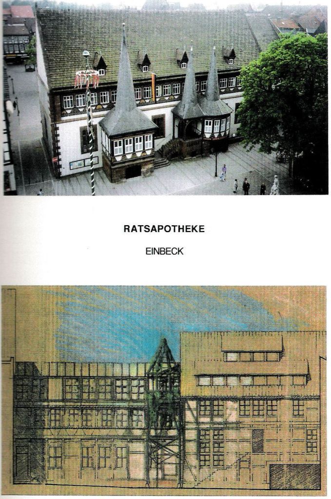 The extraordinary volumes proud of Einbeck’s Rathaus suggested the opportunity to build an independent creeper-invested terrace to the rear, proud of the courtyard wing, potentially equipped with roof-space Wintergarten.