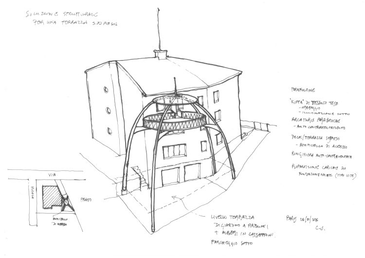 A rapid sketch faxed from Parma in time for a condominium meeting at the request of a friend.