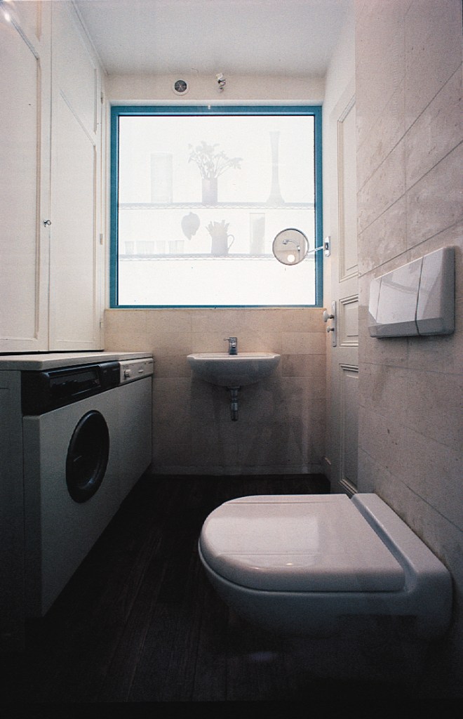 L’astuzia qui era di spostare la partizione in modo di modificare telaio e anti esistenti per accomodare lavatrice e l’ asciugatrice.