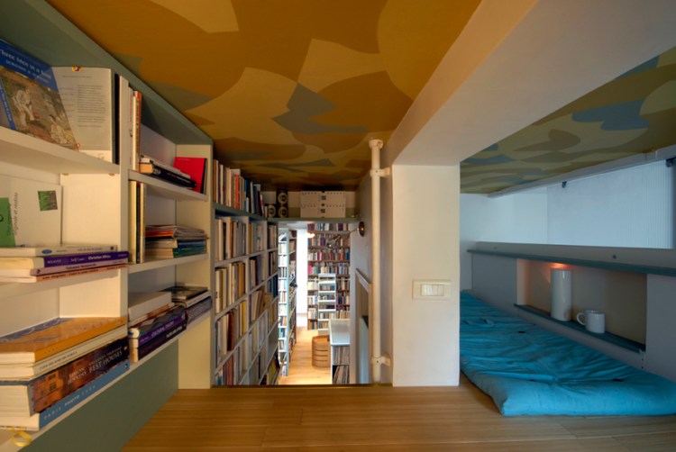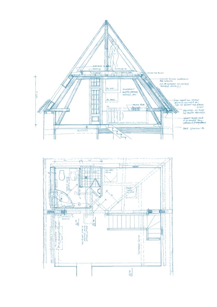 Per preservare l’ attrazione della proprietà alla rivendita, un luogo discreto er dormire (5m2) fu ricavato dai volumi sopra il WC d’ origine, il corridoio e la stanza da bagno.