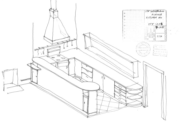 Studio per la zona “domestica” (già cucina) dello studio d’ architetto, Nizza.