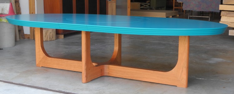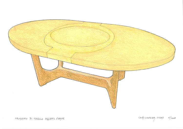 Tavolo in noce nostrano a secondo l’esigenza del cliente parmigiano : ovale, estensibile e opera d’arte.