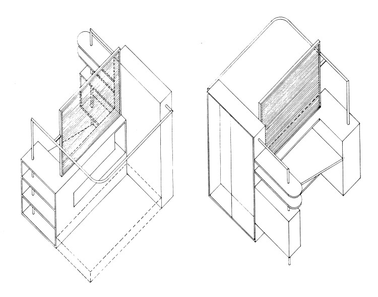Esercizio di progettazione (differenziazione spaziale in base delle attività svolte) di un mobile porta-tutto per monolocali.