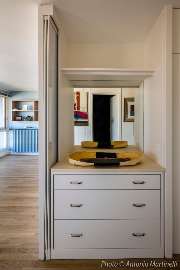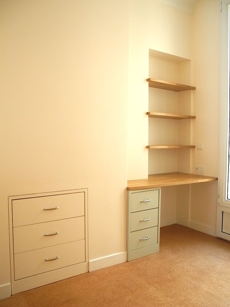 Mobili su misura in MDF dipinto per un’ appartamento parigino rinnovato.