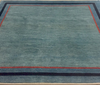 Tappeto di lana assortito al motivo a nastro del pavimento a mosaico esistente di un’ appartamento parigino.