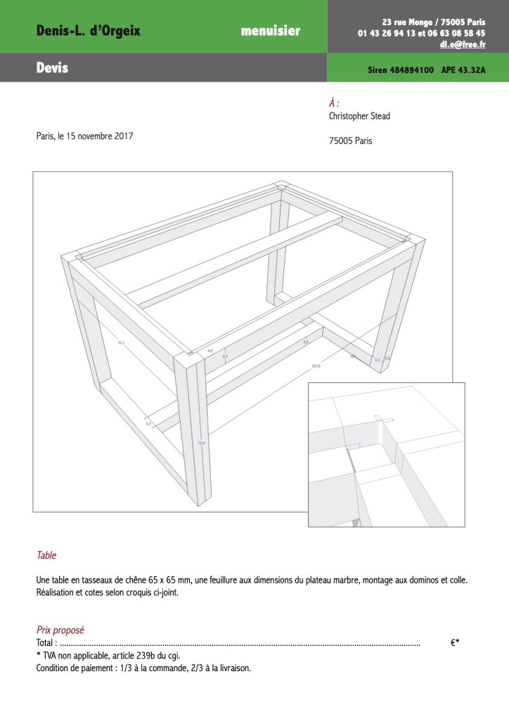 Falegname : Denis d’ORGEIX, Paris, 2018.