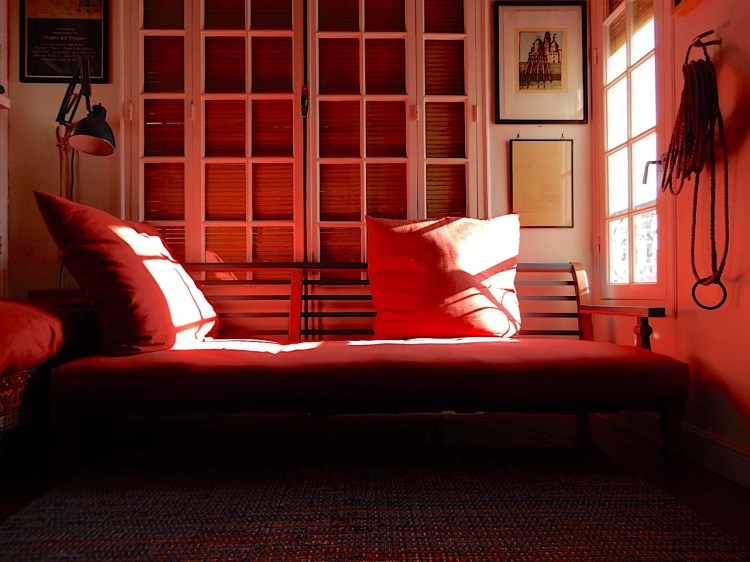 Ricupero e trasformazione di una seduta lunga (probabilmente da sala di attesa) in divano diurno.