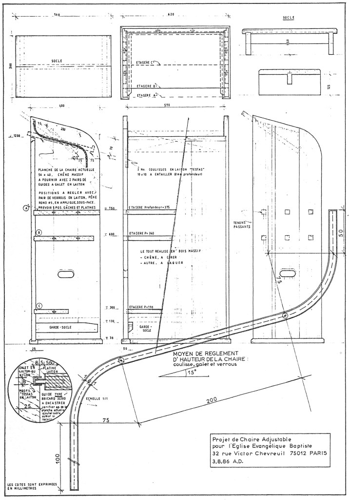 L’ inclinazione del piano di appoggio di modificava a preferenza, e un gradino er incorporato, per dei predicatori piccini.