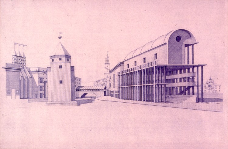 Ricupero e uso aggirato di architetture, già conosciute per la maggior parte, tramite la sola rappresentazione grafica, (di invenzione mia, sul modello del CANALETTO), ricuperato poi dal boss Aldo ROSSI che ne ha sfruttato e rimediato l’immagine a modo suo, almeno 8 anni durante.